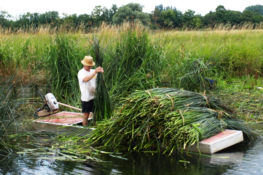 harvesting them, presumably for thatch, or just cutting them down. I would like to think the former. I know that in East Anglia they do use reeds for