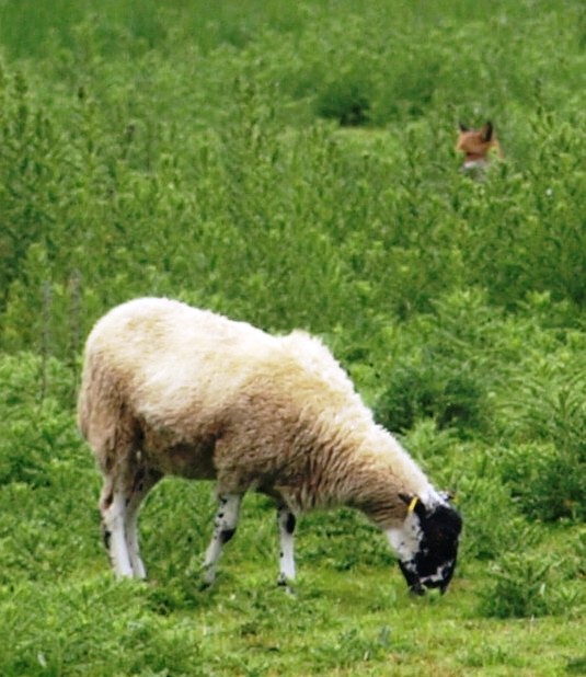Saturday 6th June - It was raining yet again when we woke up! However we had no choice but to move on as we didn't have a TV signal where we were in amongst the trees and Clive wanted to watch the Grand Prix qualifying, which was due to start around 12.30pm. As we were cruising along I spotted something in a field full of sheep and got the camera out. Can you spot Reynard the Fox, lurking in the long grass - I don't think the sheep has seen him!