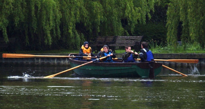 troop of scouts (again girls and boys!) in rowing boats. What a shambles � they were all rowing totally