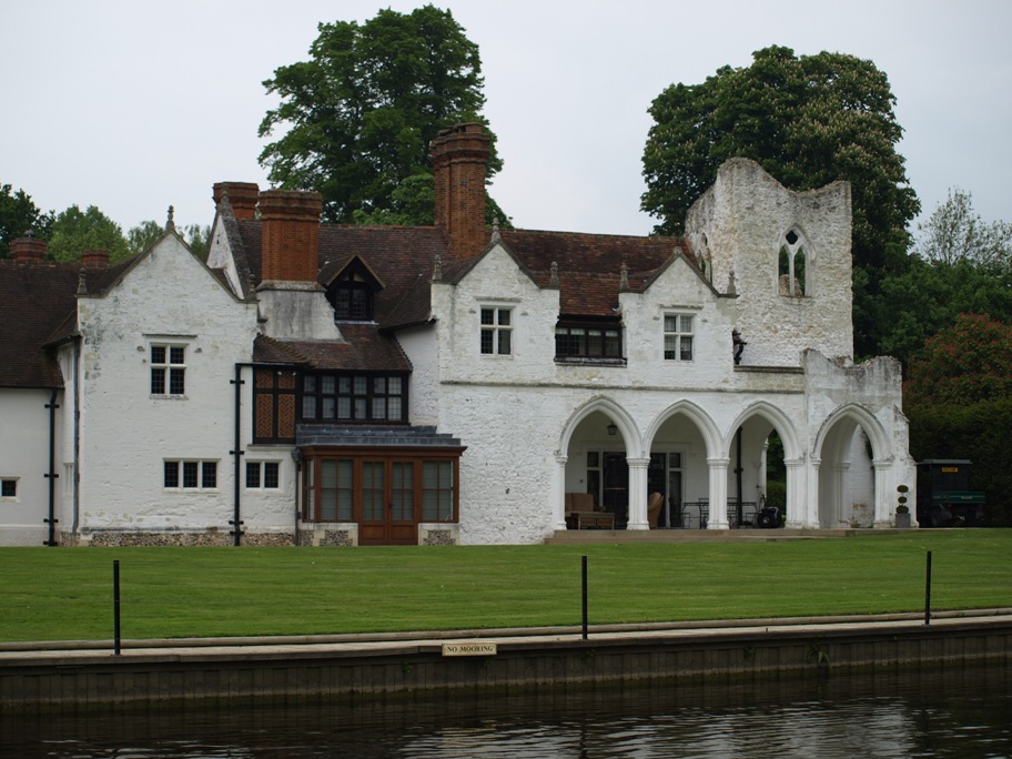 We had decided this morning that the best place for us to moor tonight would be at Medmenham Abbey where, according to our map, there are visitor moorings. However when we arrived there weren�t! We tried a couple of times to get the boat into the bank but it was far too shallow and we were in serious danger of beaching, especially if the river levels were to go down during the night, which does happen!