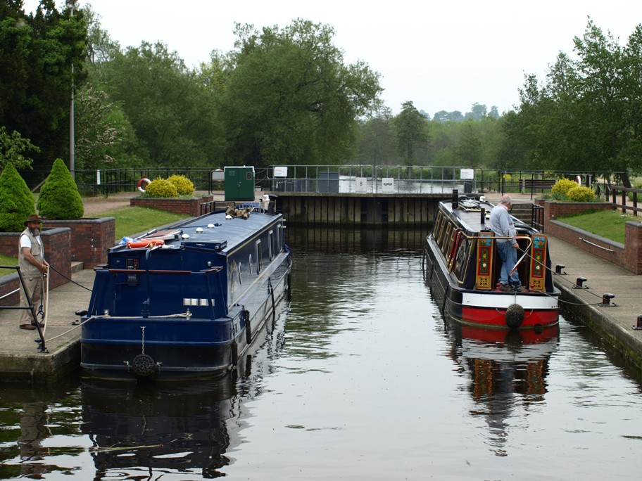 We were just preparing to leave our mooring this morning when a small cruiser passed us, heading towards the lock. So I quickly trotted down to the lock to ask the lock keeper to wait for us, whilst Clive untied the boat and headed for the lock.