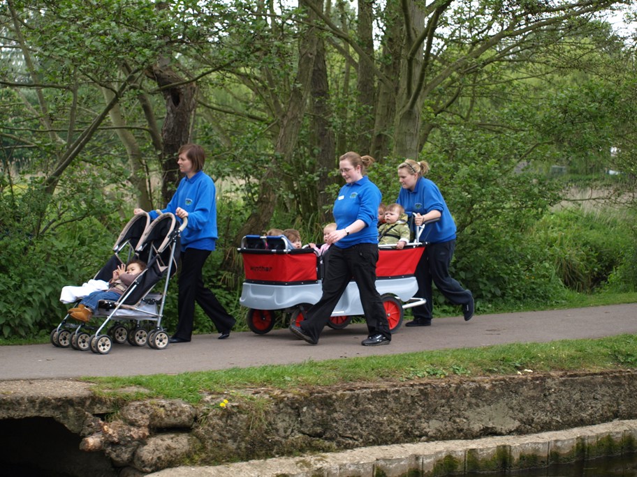 Once we had done all our shopping we headed back to the boat for a quick lunch before setting off again. We didn�t want to stay in Henley overnight as you have to pay for the moorings, which is about a tenner! Just as we were getting ready to leave we saw a strange spectacle. Obviously this is how the ladies of Henley have their children walked in the afternoons � I wonder how the dogs get walked?