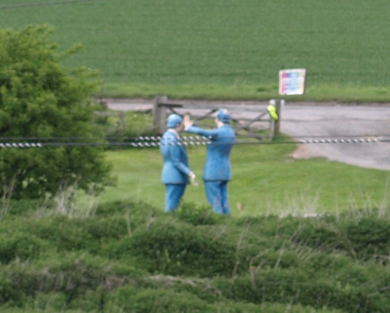 So we carried on alone. The next lock we came to was the quirky one with the swing bridge in the middle of it. Dave had told us we should look over to the left once we were in the lock as there was something interesting in the distance � we looked and sure enough saw the very strange sight of two blue statues next to a house � Morcambe and Wise! Evidently the guy who lives there used to have a theatre and Eric and Ernie had appeared there on one occasion and the statues were part of the advertisement. He liked them so much he brought them with him to his new house and here they are!