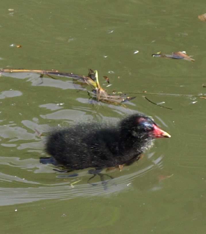We hadn't been back on the boat long when I heard a high pitched "peeping" outside the boat. I looked out of the window and there was a newly hatched Moorhen chick - bless! The mother was being very attentive feeding it with stuff she pecked off the surface of the water, presumably bugs!