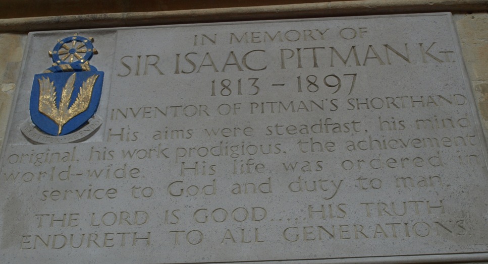 There are memorial stones all over the walls of the Abbey and some of them are really ancient and make very interesting reading. One of them Clive called to my attention as being of special interest to me � Sir Isaac Pitman! I attended a Pitman�s college in Leeds in my youth and of course learned Pitman�s shorthand, which I still use to this day!