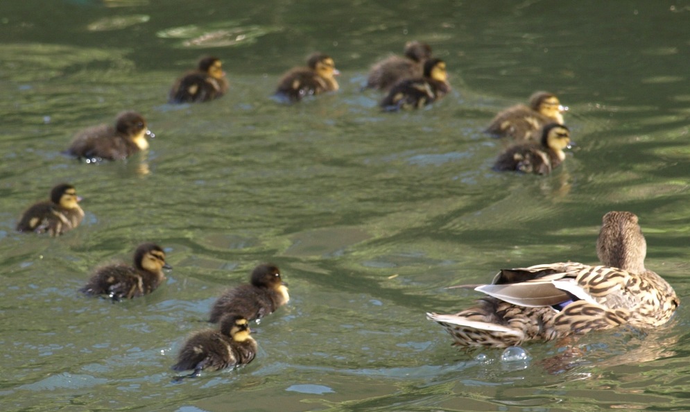 Clive had quite a surprise when he woke up yesterday morning. He had just put the kettle on to make us both a cup of tea when he heard a strange noise, high pitched squeaking! He looked out of the window and saw a mother duck with eight tiny newly hatched ducklings! How lovely - the first Spring babies we have seen. However, there has been an awful lot of feathered fornication going on over the last couple of weeks so no doubt they won't be the last! Just a little way behind our boat, over on the other bank was a weir with quite a strong current and the stupid mother duck kept taking her babies over to it and of course the inevitable happend - bloop, bloop, bloop - one by one the tiny ducklings disapeared over the weir! In the end four of them were left up top and the mother shot over the weir, quacking furiously, after her other four ducklings. We could hear them squeaking - mummy, mummy, plaintively for ages afterwards. Then she suddenly reappeared from the river where it emerged upstream from our boat and this time she had loads of ducklings with her! She finally caught up with the four she had left behind and we counted 16 ducklings in tow althogether!