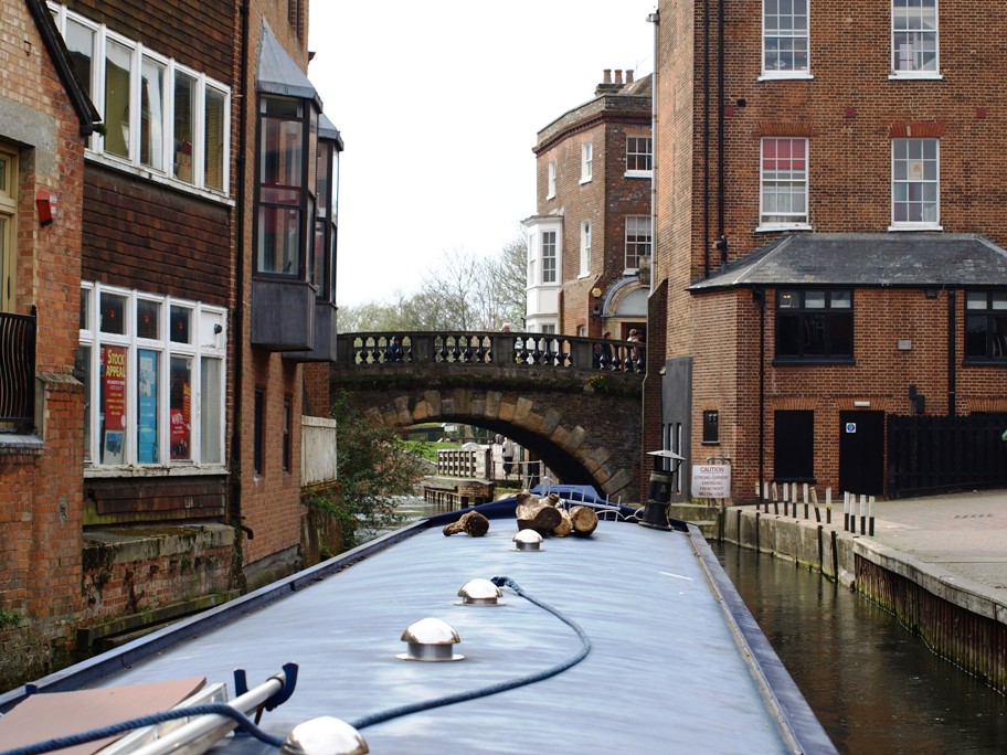 Well before we knew it we had arrived on the outskirts of Newbury. The canal goes right through the middle of the town centre and under the Town Bridge which is a stylish, single-arched stone structure dating from 1770. I think its rather pretty.
