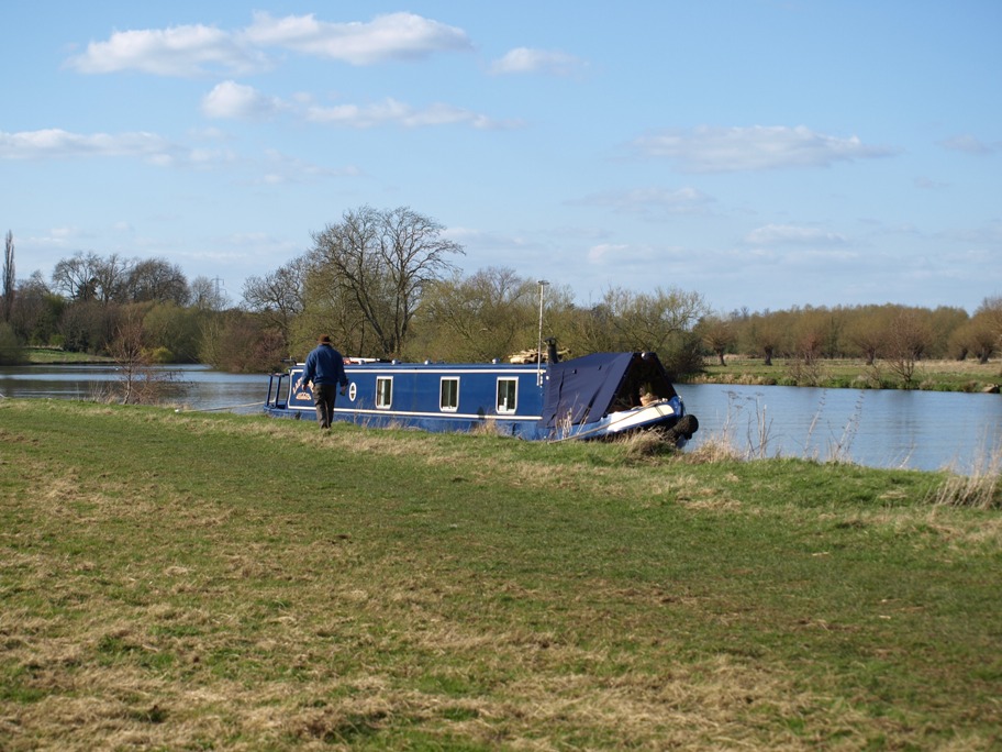 The history of this event goes back to 1984 when the then lock-keeper of Day's Lock, decided to hold an event to raise money for the R.N.L.I. about which he was very passionate. He got the idea after watching a couple of people playing pooh sticks on the bridge one day. The event has been running annually ever since and people from all over the world come and take part. After he himself retired the organisation of the event was taken over by the local Rotary Club but they too have had enough and this year it has been run by a newly formed Oxford Rotary Club. Lets hope they raised lots of money. If you are interested in finding out more about it, check out their website: www.pooh-sticks.com We had a bit of a hairy moment as we were passing under the bridge, they all started yelling and jumping up and down to warn us that there was a line straight across the river (the finish line!). Fortunately Clive had seen it and throttled back just in time to give the guys chance to lift the line - it just missed our chimney and we had to duck as we went under it!