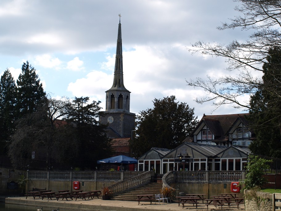 flood in the night they could end up with a boat in the bar!!! Its a shame really, we would have quite liked to explore Wallingford. We had passed the ruins of an ancient castle on the way in and as you can see from the picture there is a very pretty church with an amazingly thin spire - I would have liked to have seen more of it. Oh well.