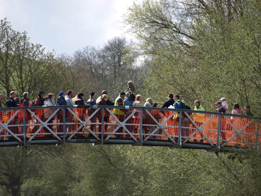 As we came through the Clifton Lock the lock-keeper had informed us that there was an event going on a little further along the river at Day's Lock. Sure enough as we approached the lock we could see crowds of people on the bank and clustered on the bridge, including one man holding one of those big fluffy microphones and another guy with a TV camera.