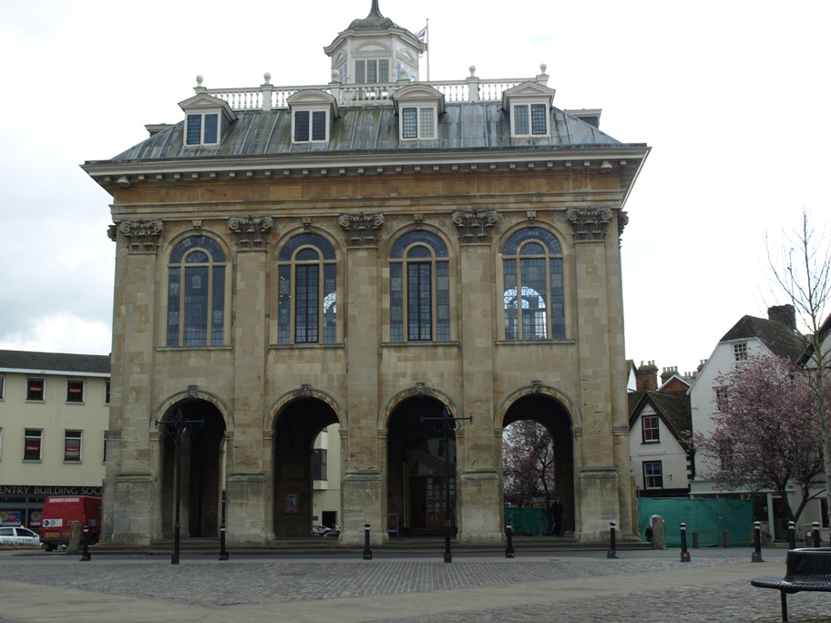the "grandest town hall in Britain". It stands on pillars, leaving a sheltered area beneath for a market or