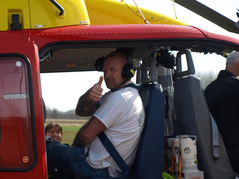 At this point they realised that there was no way they could get him back to their ambulance along the towpath and the boat they had arrived on was facing the wrong way and the nearest turning circle was at least a couple of miles away, so that was out. So the only thing for it was to call in the Air Ambulance!