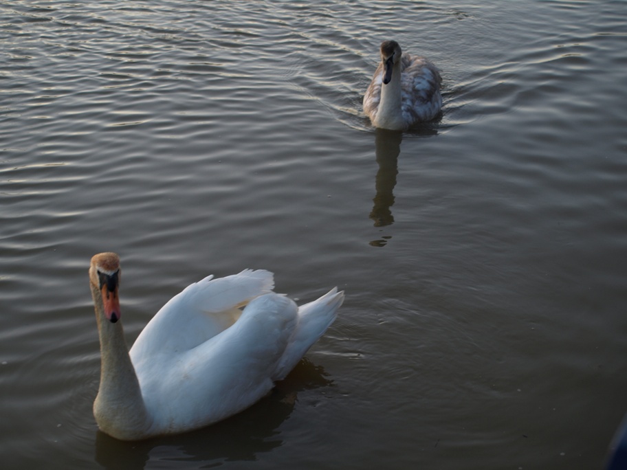 Just as we had finished tying the boat up a couple of hungry visitors arrived looking for bread. Luckily we had some stale bread, saved specially for this purpose, so Clive went off to give them their tea. I don�t think I have ever seen a readheaded swan before!