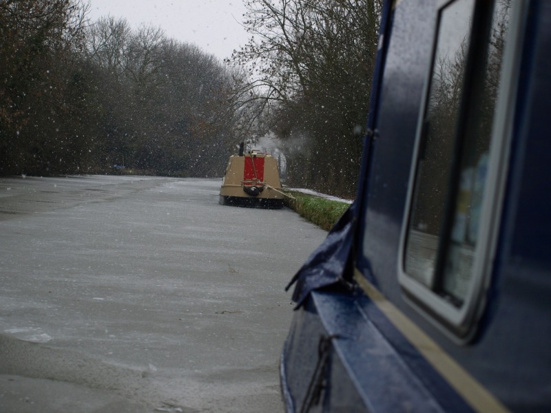 Well we are still here, stuck in the ice and not going anywhere! We have been in this spot for three days now and the ice on the canal is not showing any signs of melting. Well in saying that the surface of the canal which had already been broken by the passage of the boat does actually melt on top during the day but soon freezes again as the temperature drops, but it doesn�t actually melt right through.