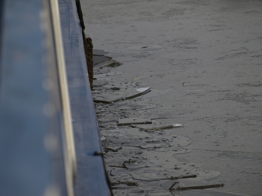 We went back to the boat and had a coffee and whilst Clive was worrying about how we would manage on an iced up canal another boat came the other way breaking the ice as it came! Excellent � so off we went. It was quite an experience there were actual ice floes knocking against the boat and the banks and it was quite weird, especially the sound it made � it was a sort of crackling noise. Very odd!