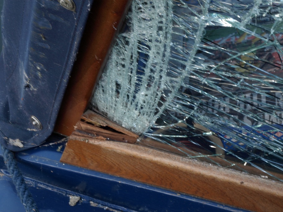 Fortunately we are insured and we have already set the wheels in motion to get the cratch board and glass replaced and the cover repaired. As it happens we are going to be passing through Braunston in just over a week's time, which is where the cover was made. Also Dave Bassett, the guy who made the cratchboard itself lives near Coventry and we are heading his way too. So it should work out very well, with everything sorted in a reasonably short time. However we could really have done without this!