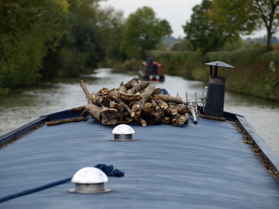 I forgot to mention, we had just done a couple of locks and I was setting the next one when I noticed a lot of very dry looking wood amongst the trees adjacent to the lock. When the boat had come up to the top of the lock I grabbed Clive and went foraging. There was loads of lovely dry wood so we grabbed as much as we could and piled it on the roof. We now have a very healthy looking woodpile just waiting to be sawn up into stove sized pieces!