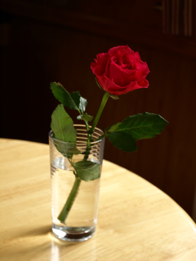 After a couple of hours of to unwind we decided to go for a meal. We remembered having a meal at a rather nice restaurant in Weedon once before but couldn’t just remember whether it was Chinese or Asian. We soon found out, it was a Bangladeshi restaurant and it was really lovely. We had a wonderful meal and our waiter even gave me a lovely long stemmed rose as we were leaving – how nice. Then we strolled back to the boat to finish off the evening with a film. Unfortunately as I don’t have any tall vases on the boat I had to cut the rose down to half its size and it is now gracing our table in a tumbler!!