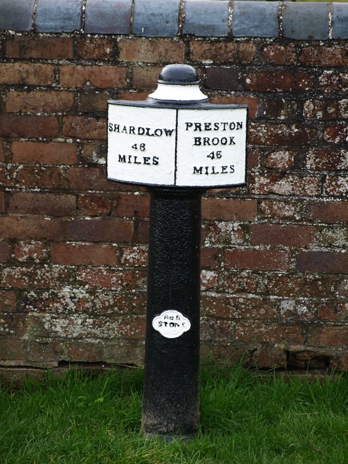 We set off after breakfast and there was a lock immediately in front of us – I quickly donned my boots and jacket and headed off with my trusty windlass to do the necessaries then as soon as we were through it I took them off again and went back inside – Clive didn’t really need my services for a while and I had things I to do, so I left him to it. In fact we had a couple of hours of cruising and nothing else until we reached the first lock in the Stone flight, number 26 The Aston Lock. Adjacent to the lock is an old mile post - there are many of these along the canals. However this one is special, it showed that we were exactly half way along the Trent and Mersey Canal.