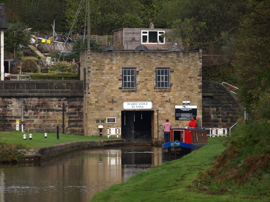 Once through Stoke on Trent it wasn’t long before we arrived at the Harecastle Tunnel. We had to moor up and speak to the BW guy first. He took down our licence number, checked the name of the boat, asked if we had any pets on board, how many souls on board etc etc then gave us a list of dos and don'ts whilst in the tunnel. He told us we would have about a 30 minute wait as there was a boat coming through the tunnel from the other end – Harecastle is a narrow tunnel and there is only room for one way traffic. A short while later he came over to tell us that the other boat was making good speed and it would be through shortly. Sure enough about ten minutes later the gate opened and a narrowboat emerged from the tunnel, then it was our turn!