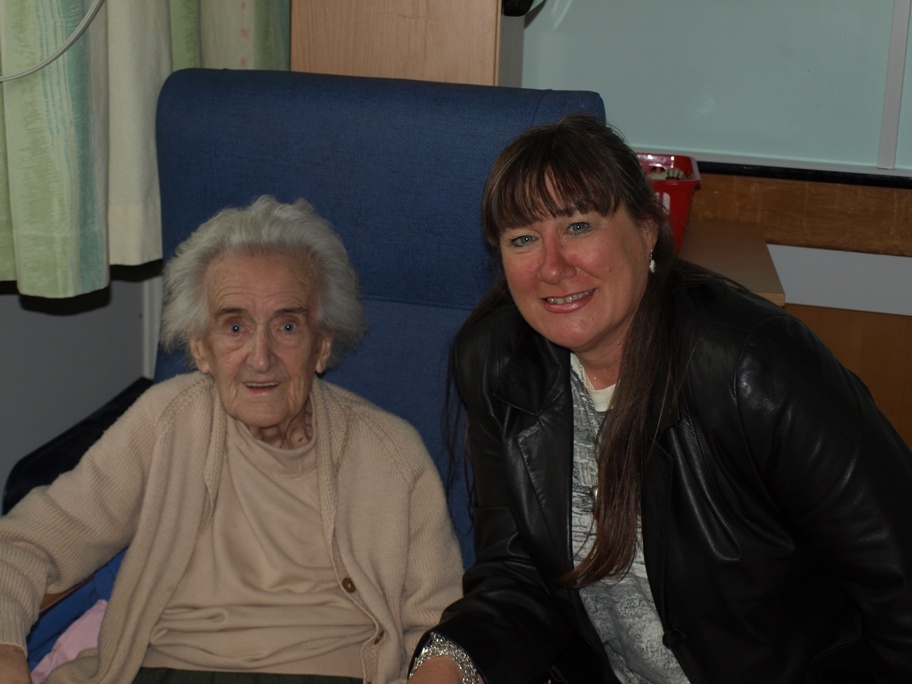 On the way down to my sister Thelma’s party we stopped off at Huddersfield Royal Infirmary to visit my Auntie Nellie (my father’s only sister) who was 90 years old on October 10th. She has been in hospital for a few weeks but was looking very well when we went to visit her and she is hopefully going to be discharged very soon. I got Clive to take a photograph of us – well I was looking reasonably presentable as I was on my way to a party and Auntie Nellie looked great!