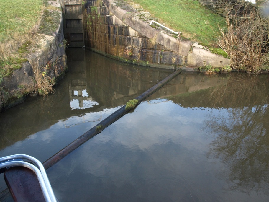 The pole now safely behind the posts which will stop it from floating back in front of the lock gates.