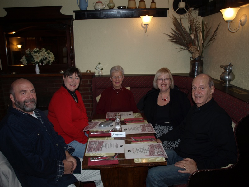 We also went out for dinner with Heather, Les and Suzanne last night. They picked us up and drove us to The Star in Acton. It wasn't actually far from where we were moored, in fact we could see Acton Church from the boat. We had a lovely meal, the food was delicious and the company was great. I asked the waitress if she would take a photograph of us to mark the occasion.