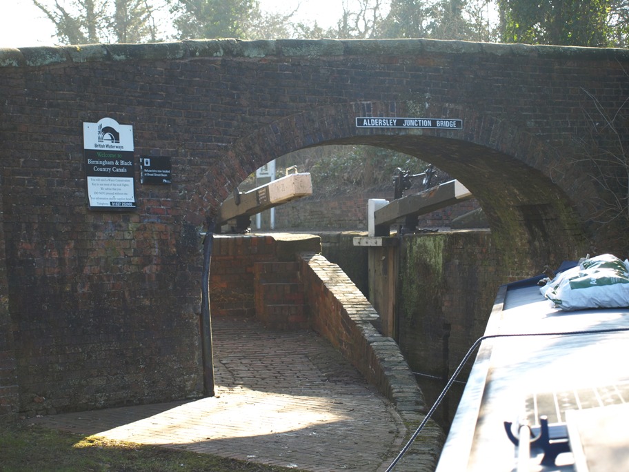 We got up this morning bright and early, had a good breakfast (porridge!) then set off at 9.00am - we had a long, hard day ahead of us! I stayed down below doing the washing up etc then I realised we were turning right again! We had arrived at Aldersley Junction and the first lock already!