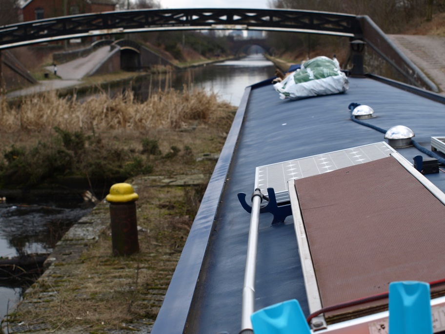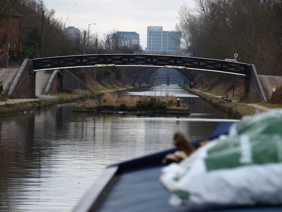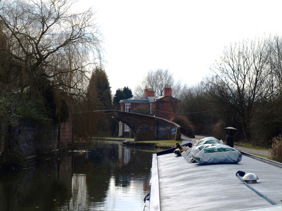 We were still totally at a loss to explain this strange aberration, however once we were through the narrows we realised what was going on - it was traffic calming, canal style! Just after this "island" there was a turning into one of the many loops of the canal which used to wend there way around the many factories and warehouses that used to be here many years ago. At that time this canal would have been bustling with working boats carrying coal and steel and other commodoties and so there had to be some way to slow down the boats on the main line to allow access and egress from the side loops. So there you are!