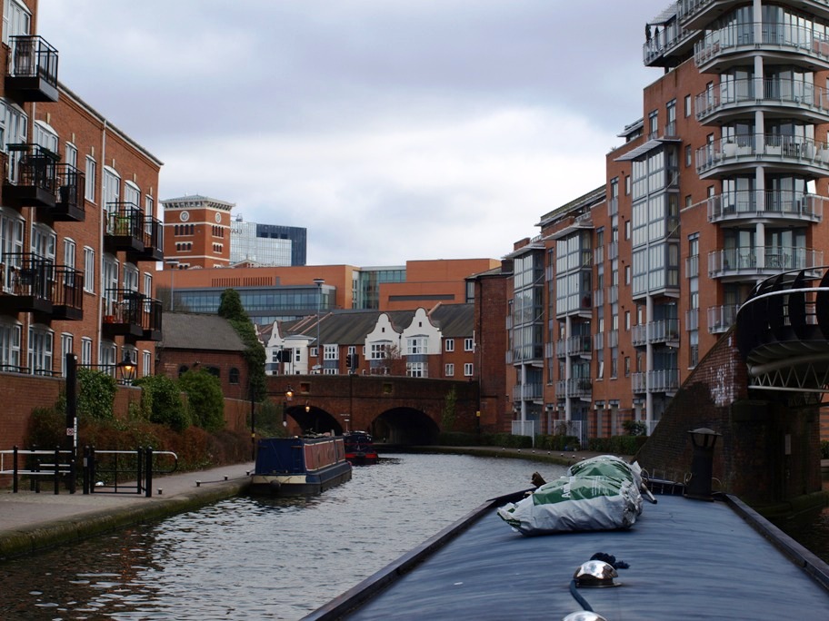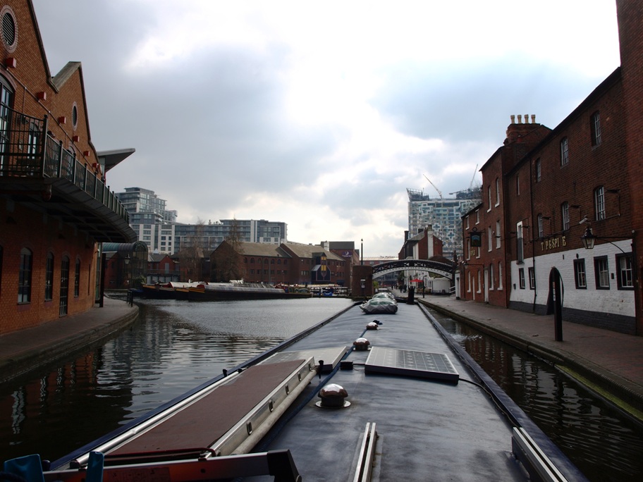 Soon after the lock flight we could see Birmingham's high rise buildings in the distance. There are many canals in Birmingham, in fact it is known as England's Venice! As we were cruising down towards the city centre we spotted something ahead - what on Earth is that?!