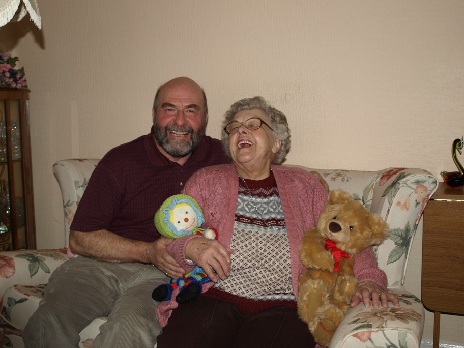 She showed us her "friends" - a teddy bear she had received for Christmas from her niece and a knitted doll, which her late sister had sent her a few years ago after she said she had nobody to talk to! We had a cuppa and a bun then it was time for us to say goodbye. I think Auntie Joan would have liked us to stay longer as she doesn't get many visitors, but we really had to get back to the boat. So we gave her a cuddle and said goodbye - we are really glad we went to see her, she's lovely.
