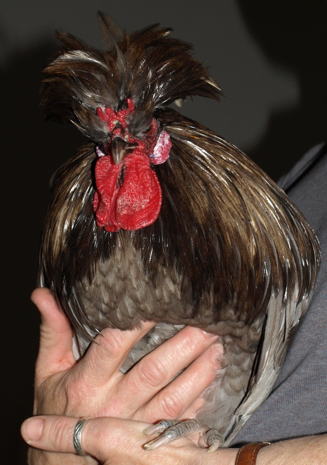 Jaffa isn't the only bird who lives at Cedar House. There are also several ducks and a pair of swans who have chosen the garden to raise their broods but there is also a cockerell called Harry! Laura went and fetched him so that we could have a look at him - we had heard him earlier in the afternoon when he was crowing in the garden! He is also quite an amazing bird - I have never seen such a hairdo in my life!