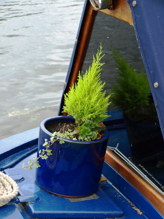 It was so nice here we decided to stay another night. I took the opportunity of sorting out the blue planter on the bows - I got rid of the old dead conifer and planted a new little conifer I had picked up at Tesco's. It looks much better but the trouble is there is a really big gap - I need to find something else to fill that now!