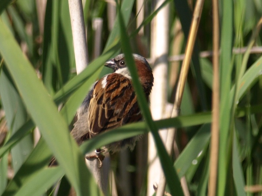 We didn't actually leave Cambridge until Wednesday July 21st!! We wandered up to Clayhithe and moored just under the bridge from The Bridge Hotel at Waterbeach. Thelma came and joined us the following evening, just for one night, before heading off down to Sussex to visit friends. We stayed another night and then on Saturday July 23rd we set off again and a short while later turned off the main drag, through a lock and onto the Reach Lode. We managed to find a mooring a the end of a long line of residential boats just at the entrance to the Wicken Lode. We didn't relish the idea of taking the boat up the Wicken Lode itself as it is very narrow and weedy but after securing the boat we decided to take a walk up the Lode path to the village of Wicken. It was a lovely afternoon and we had a very pleasant walk culminating in a pint at The Maid's Head pub in the village. On the way back we were absolutely thrilled to spot a little bird amongst the reeds and managed to take his photograph. He is a Red-Backed Shrike, a rare visitor to East Anglia - we are very privileged to have seen him.