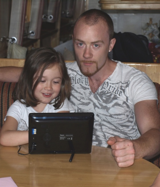 Vicki and Ben arrived at the boat soon after six and Gareth and Indy not long after them. It was time for Indy to open her presents! Again, we had struggled with ideas regarding what to give her but finally decided on a digital photo frame. I had originally planned to make her a scrapbook but decided in the end that I could get far more photographs on a digi frame and as she is a bit of a technodweeb already thought she would appreciate it more. So I had spent several days choosing and downloading photographs from all the thousands I must have taken since she was born. I ended up with just under 300 photographs on it! These started from the day she was born right up to the present day and include lots of photographs taken with her daddy but also other members of the family like Clive and I, Clive's parents, Vicki and Ben etc etc. We gave her the parcel and she excitedly ripped the paper open and then looked at the box with a distinct lack of enthusiasm! We got it plugged in and switched it on, once it was working her face lit up and she sat quite enthralled watching the photos changing - I think she will appreciate it once she is back in the States - I hope so!