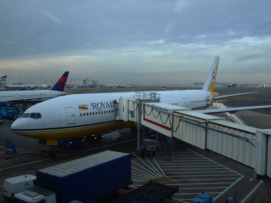Unfortunately, due to the intense security at Heathrow, our flight crew were delayed by half an hour! Finally they arrived and boarding could commence. We had chosen to fly with Royal Brunei Airlines, one reason being it was the cheapest (!) but also because we quite fancied going somewhere exotic and the Sultanate of Brunei is certainly that!