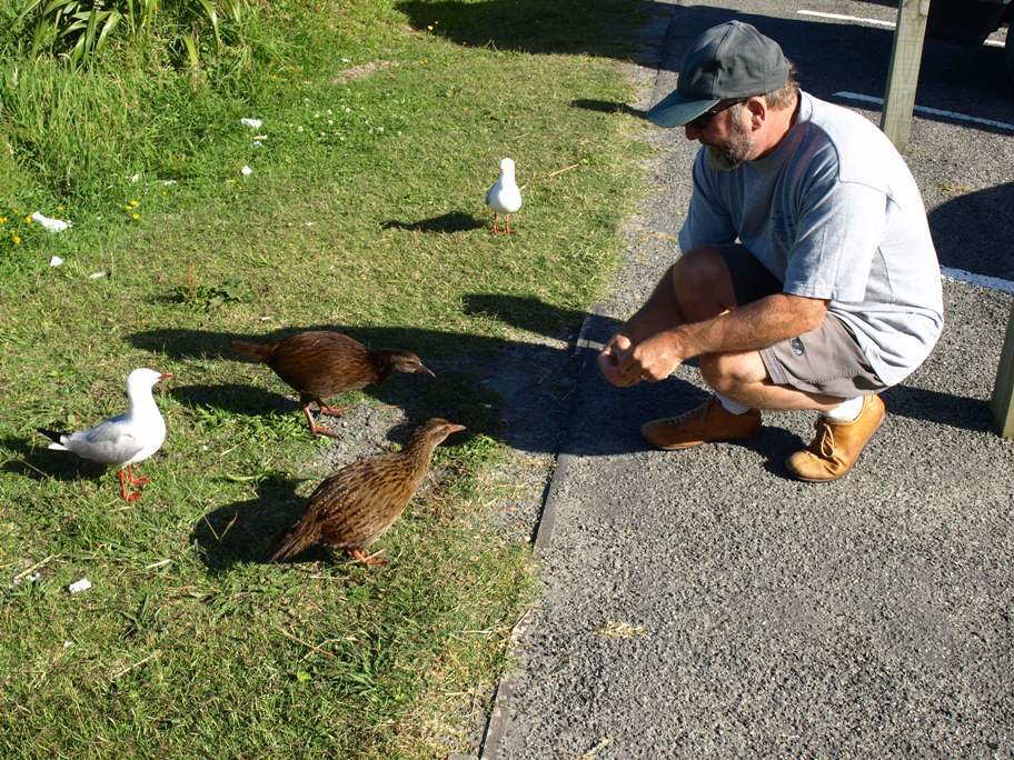 Clive feeding the Wekas