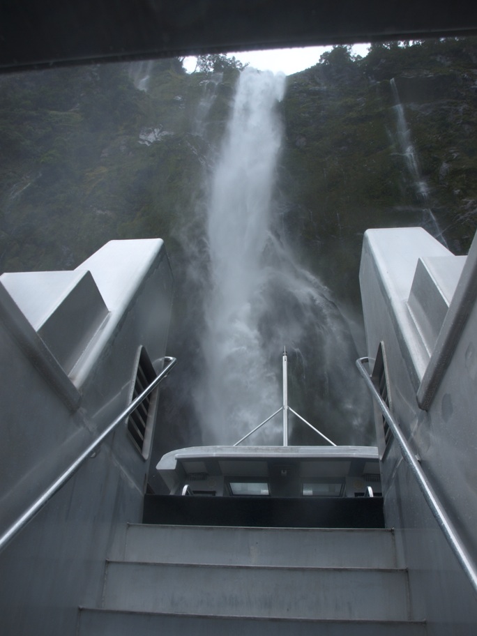 The boat continued up the Northern side of the Sound until we arrived at Sterling Falls, which are evidently 151m high! We had seen the falls on our way down the Southern shore but we were much closer now. In fact the skipper took the boat right up to the falls so that the water was actually pouring over the bows – it was awesome! It was also quite damp so you had to be pretty nifty taking photos!!