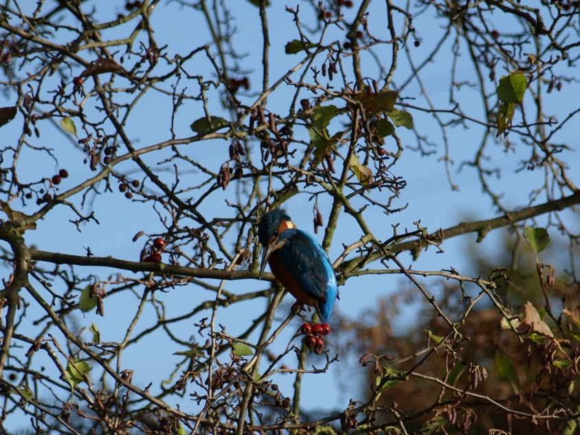 kingfisher flitting along ahead of us, alighting on fence posts tantalisingly
