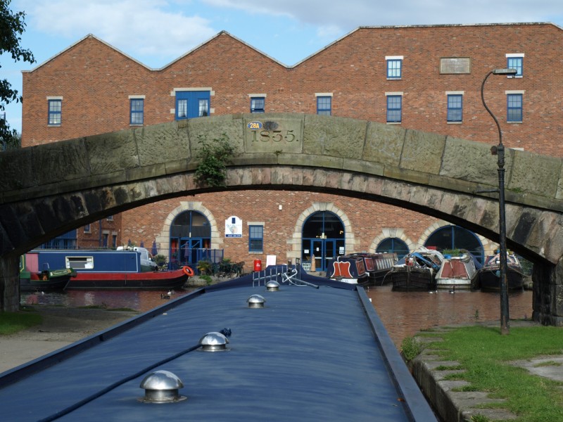 The place has a rather nice backdrop with offices and apartments framing the water. Here we turned East and started the journey on the famous Huddersfield Narrow Canal.
